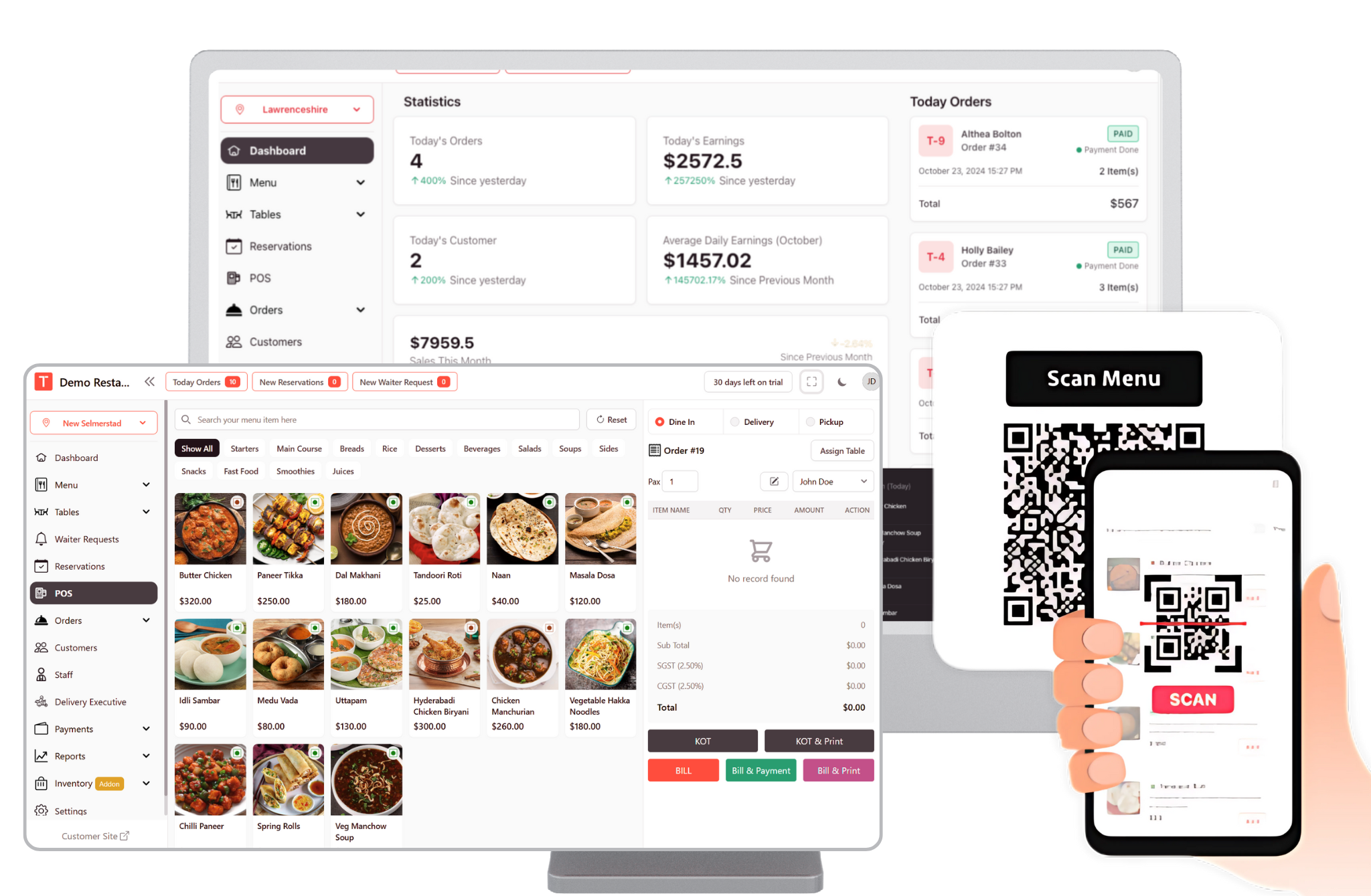 Eliminate confusion and reduce order processing time with our powerful restaurant order management system. Manage dine-in, takeaway, and delivery orders from a single dashboard. Seamlessly integrate with third-party platforms for centralized order handling.